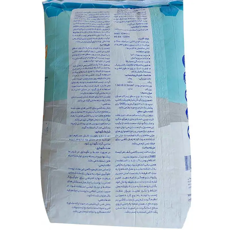 • میزان مصرف: بسته به نوع سطح و شیار پشت کاشی، حدود ۲.۵ تا ۴ کیلوگرم در هر متر مربع