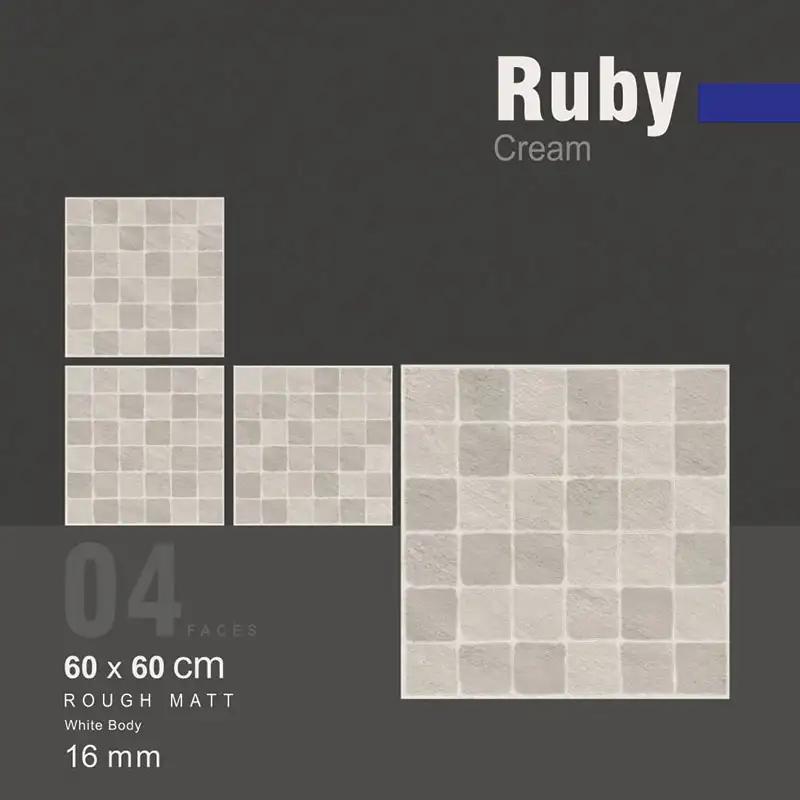 در پاسخ باید گفت مدل روبی به دلیل بدنه پرسلان خاک سفید و ضخامت ویژه ۱۶ میلیمتری، مخصوص فضاهای پرتردد و سنگین طراحی شده است. این سرامیک پارکینگ بهراحتی وزن خودرو را تحمل کرده و در برابر ضربه و فشار مقاوم است. سطح مات و برجسته آن باعث میشود که در هنگام بارندگی، لغزندگی به حداقل برسد، که این ویژگی آن را به بهترین سرامیک برای کف پارکینگ و محوطههای باز تبدیل کرده است.